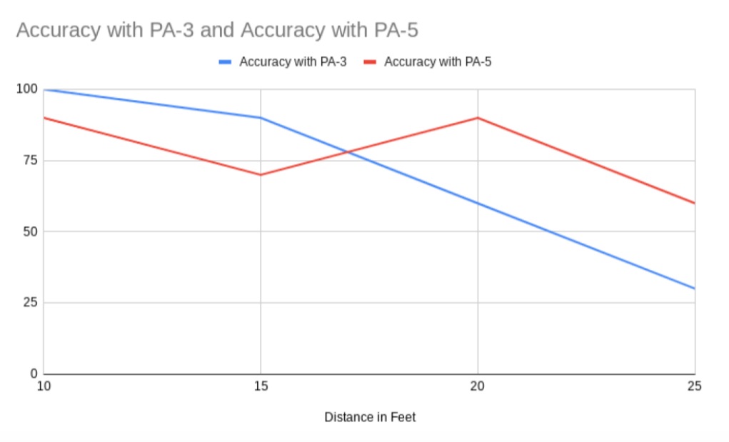 Looking at the numbers, the PA-3 seemed a bit better at 10 and 15 feet. But surprisingly, the PA-5 did better at 20 and 25 feet! However, to know if these differences were just random chance or actually meaningful, I had to do some statistical tests (specifically, a paired t-test). And guess what? The results weren’t statistically significant. Basically, this means the differences we saw could very easily have just happened randomly.
